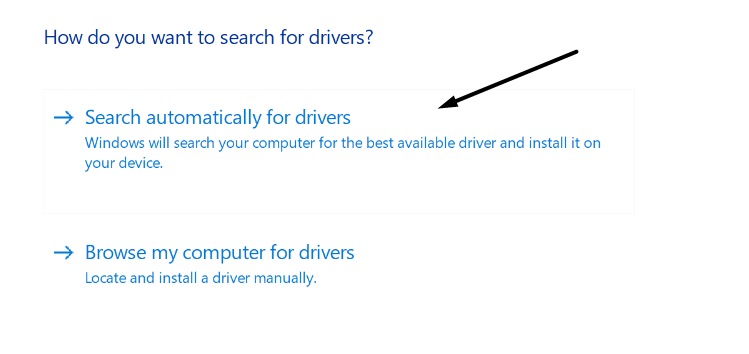 4.Selecteer deAutomatisch zoeken naar stuurprogramma'soptie in de prompt en laat het stuurprogramma bijwerken.