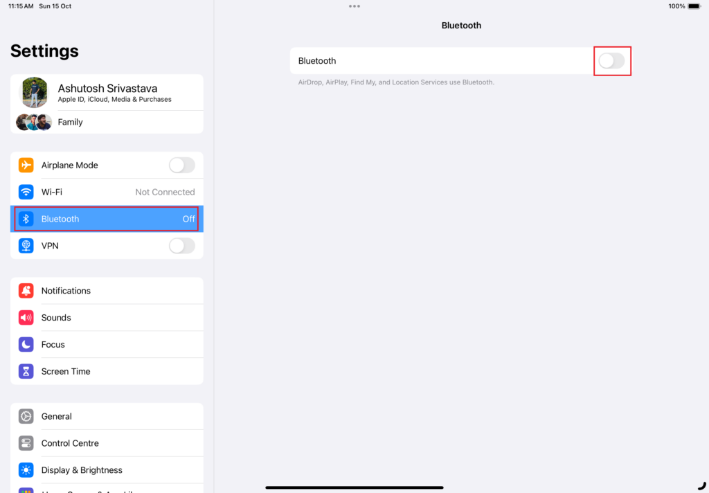De Apple Pencil van de eerste generatie en de Apple Pencil van de tweede generatie gebruiken beide Bluetooth-technologie om te koppelen met een iPad. Als de Bluetooth-verbinding op uw iPad is uitgeschakeld, werkt de Apple Pencil mogelijk niet. Om dit probleem op te lossen, schakelt u daarom de Bluetooth-services op uw iPad in. Hier ziet u hoe u het kunt doen: