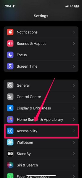 2.Zoek deToegankelijkheidinstellingen in de lijst en tik erop om deze te openen.