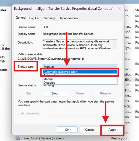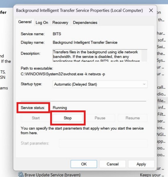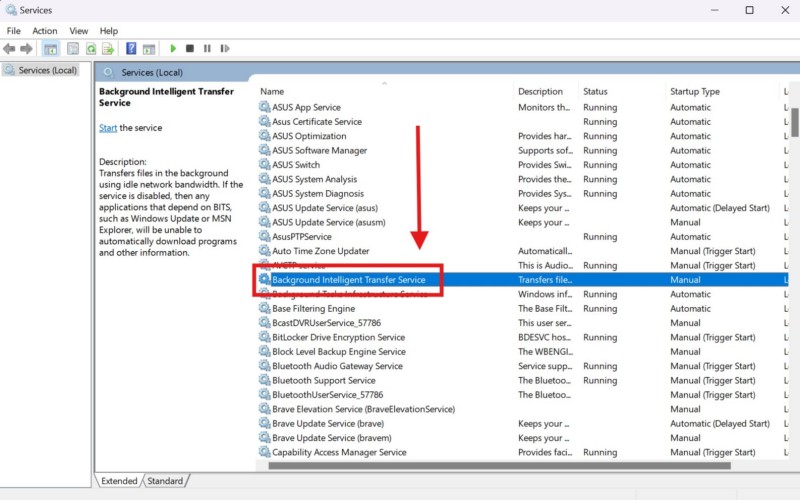 5. Start de Background Intelligent Transfer Service opnieuw op Windows 11