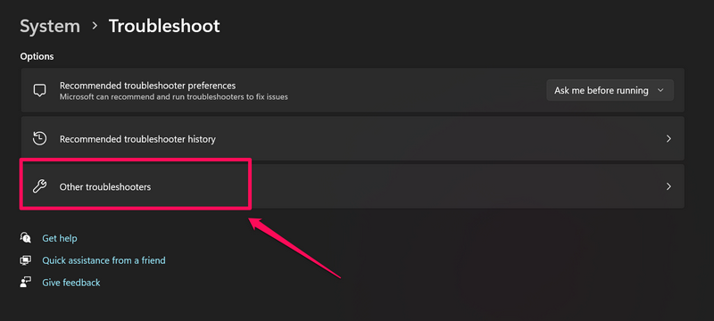 2.Onder deTabblad Systeemklik in de linkernavigatiebalk op deOptie voor het oplossen van problemenin het rechterdeelvenster.
