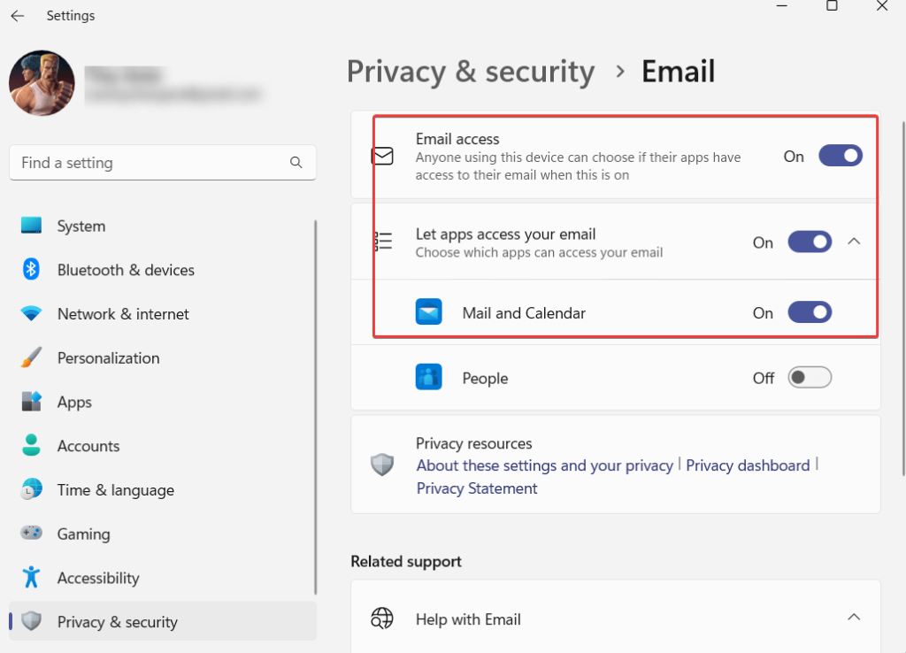 Het kan zijn dat uw privacy-instellingen niet correct zijn geconfigureerd om de applicaties toegang te geven tot de mail-app. Daarom krijgt u de Windows Update-foutcode 0x80070490. Zo kunt u privacy en beveiliging correct configureren: