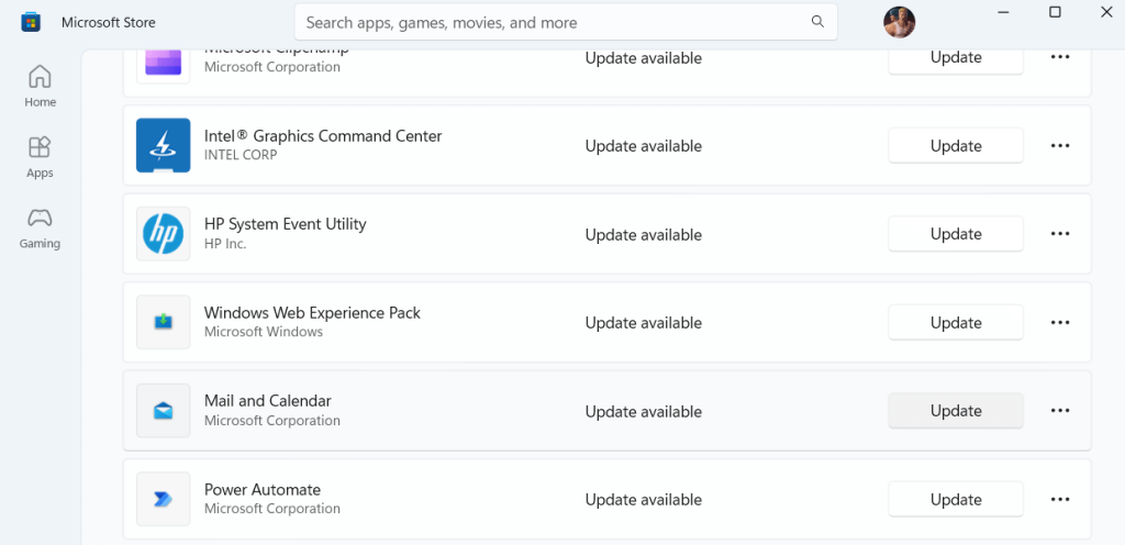 Stap 3 –Klik aan de rechterkant opUpdatenaast deE-mail en agendaapp.