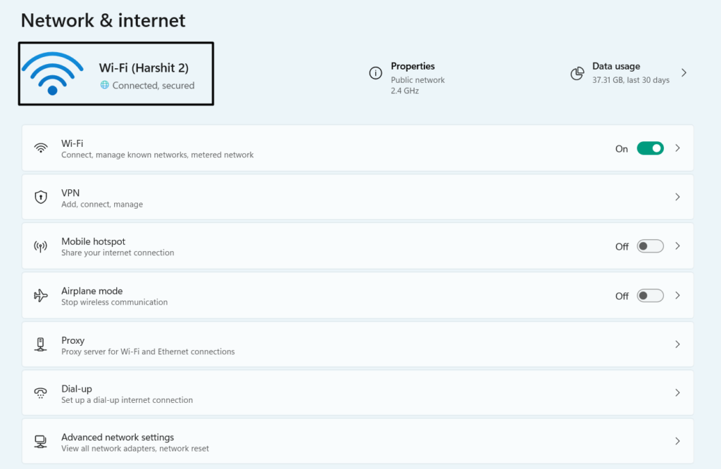 1.Ga naar deNetwerk & internetgedeelte van deInstellingen-appen selecteer deGeavanceerde netwerkinstellingenoptie.