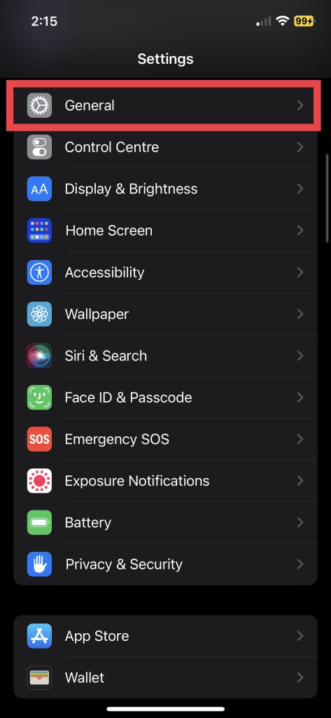 1.Ga naar de iPhoneInstellingenapp en tikAlgemeen.