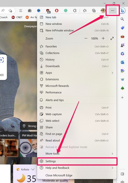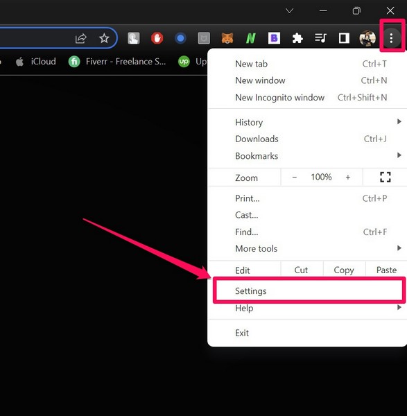 2.Klik op deknop met drie stippenrechtsboven en selecteer deInstellingenoptie in het contextmenu.