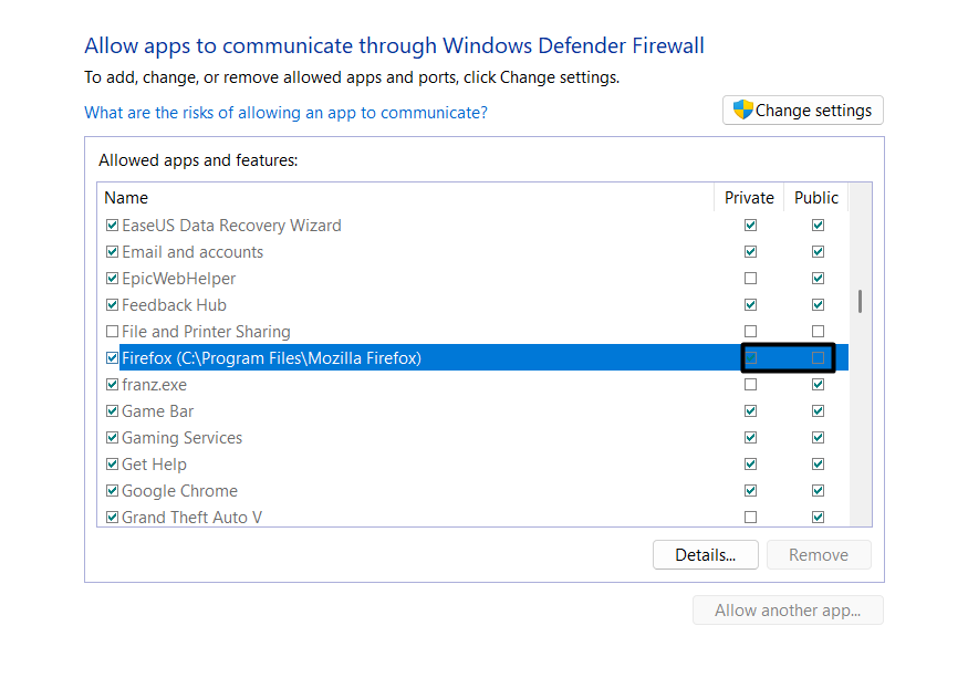 6. Configureer Firewall om Mozilla Firefox toegang te geven tot internet