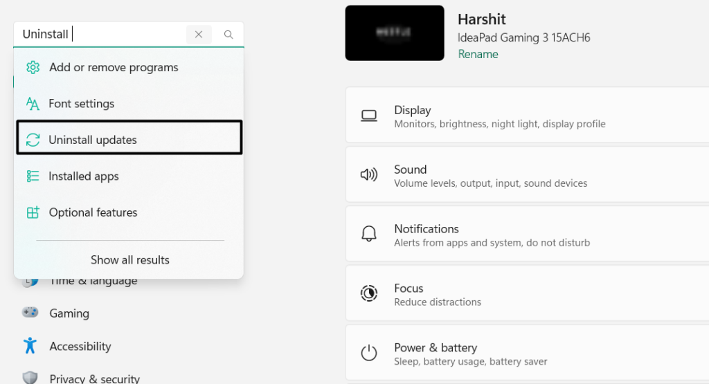 1.Ga verder naar deInstellingengedeelte van uw apparaat, voer inUpdates verwijderenin het zoekvak en kies het.