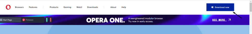 1.Klikhierom naar de officiële downloadpagina van de Opera-browser te gaan en klik opNu downloadenbovenaan.