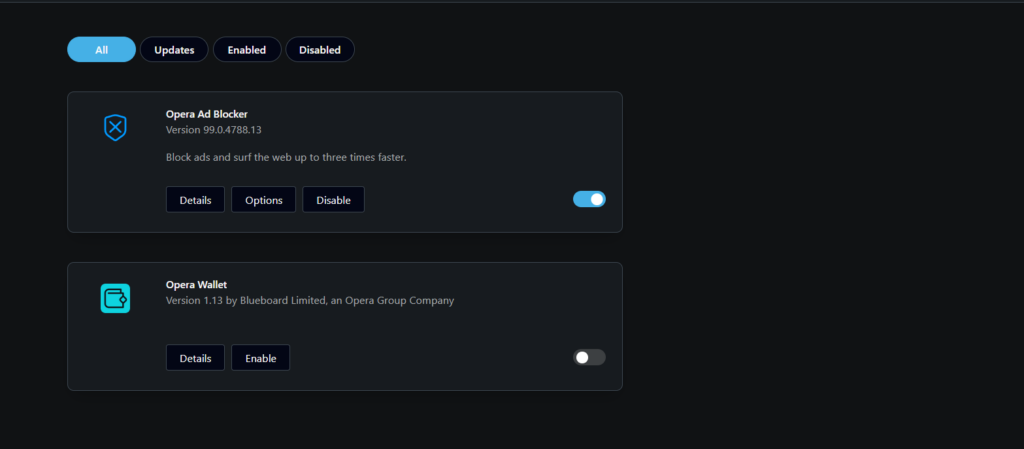 Gezien dit, raden wij u aanschakel het uitin uw Opera-browser en controleer of deze correct werkt of niet. U kunt de onderstaande stappen volgen om hetzelfde te doen: