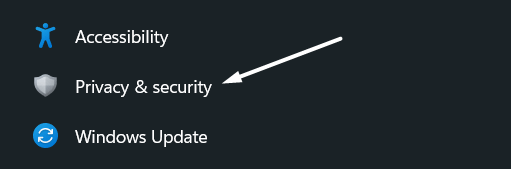 1.Open deInstellingen-appop uw Windows-systeem en selecteerPrivacy en veiligheidvanuit het linkerdeelvenster.