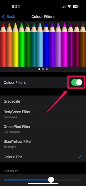 Nu kan het probleem met het roze scherm op de iPhone ook het gevolg zijn van een toegankelijkheidsfunctie die bekend staat als kleurfilters. Met de functie Kleurfilters op de iPhone kunnen gebruikers een kleurtint op hun iOS-apparaten toepassen om het uiterlijk van hun hele scherm te veranderen. De functie blijft, indien ingeschakeld, voor het hele systeem ingeschakeld en wordt op het hele scherm toegepast. Hoewel het standaard is uitgeschakeld, kan een onbedoelde wijziging van de instelling dit op een iPhone inschakelen.