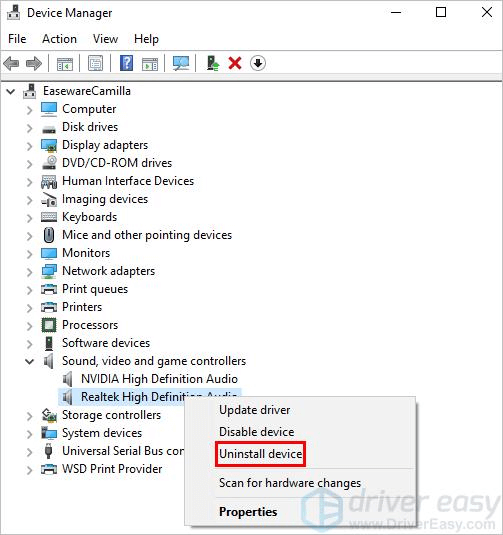 Stap 2: Klik met de rechtermuisknop op het Realtek-audioapparaat en kies 'Apparaat verwijderen'. Vink desgevraagd het vakje aan met de tekst 'Verwijder de stuurprogramma's voor dit apparaat' en klik op 'Installatie ongedaan maken'.