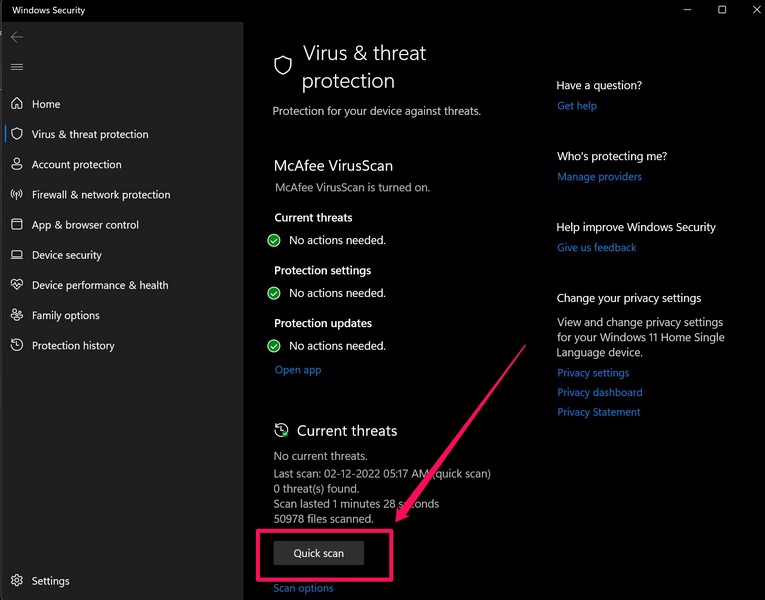 5. Scan op malware of virussen in Windows 11