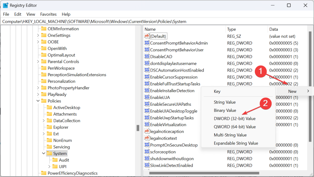 HKEY_LOCAL_MACHINESOFTWAREMicrosoftWindowsCurrentVersionPoliciesSystem