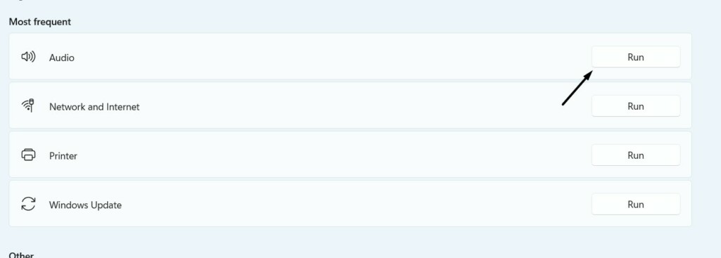 2.Selecteer op het volgende schermAndere probleemoplossersen zoekAudioonderMeest voorkomende.