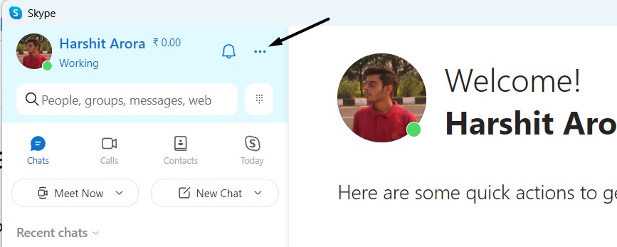 1.Open deSkype-appop uw Windows 11-pc en klik op dedrie puntjes (…)bovenaan.