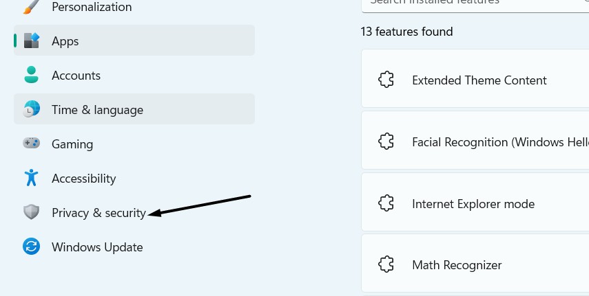 1.Open deInstellingen-appop uw Windows 11-pc en ga naar hetPrivacy en veiligheidsectie.