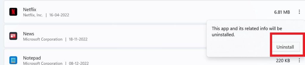 - Op de volgende pagina krijgt u een lijst met geïnstalleerde apps op uw pc. Blader door de lijst.