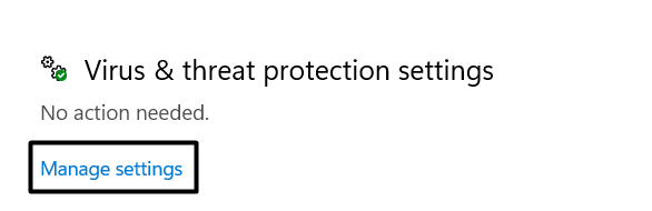 3.Klik opBeheer instellingeninInstellingen voor bescherming tegen virussen en bedreigingenin het gedeelte Virus- en bedreigingsbeveiliging om de instellingen te wijzigen.