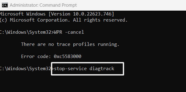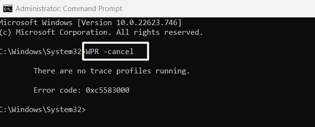 2.Nu,voer de volgende opdracht uitin de CMD-app om alle processen van de Windows Performance Recorder te beëindigen: