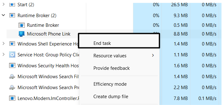 3.Nu,klik met de rechtermuisknopvoor de geselecteerde taak en selecteer deEinde taakoptie in het menu om de taak te sluiten en netwerkbronnen te besparen.