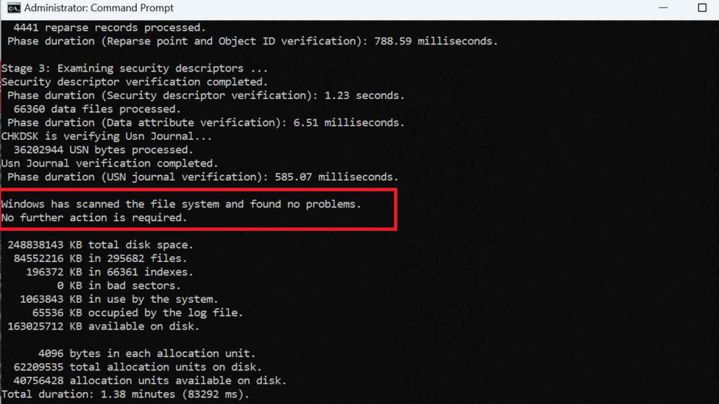 - Wanneer u een bericht ontvangt waarin staat"Windows heeft het bestandssysteem gescand en geen problemen gevonden",het geeft aan dat het probleem niet hardwaregerelateerd is.