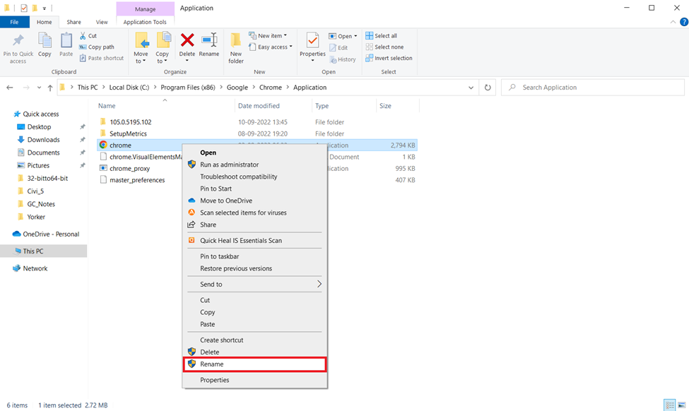 3.Klik met de rechtermuisknop op deChrome-uitvoerbaar bestanden selecteer deHernoemenoptie.