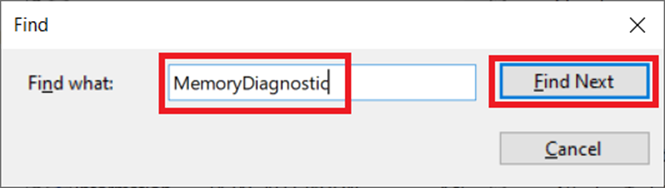 7.TypeGeheugenDiagnostischop deVind wat zoekenbalk en klik op deZoek Volgendeknop.