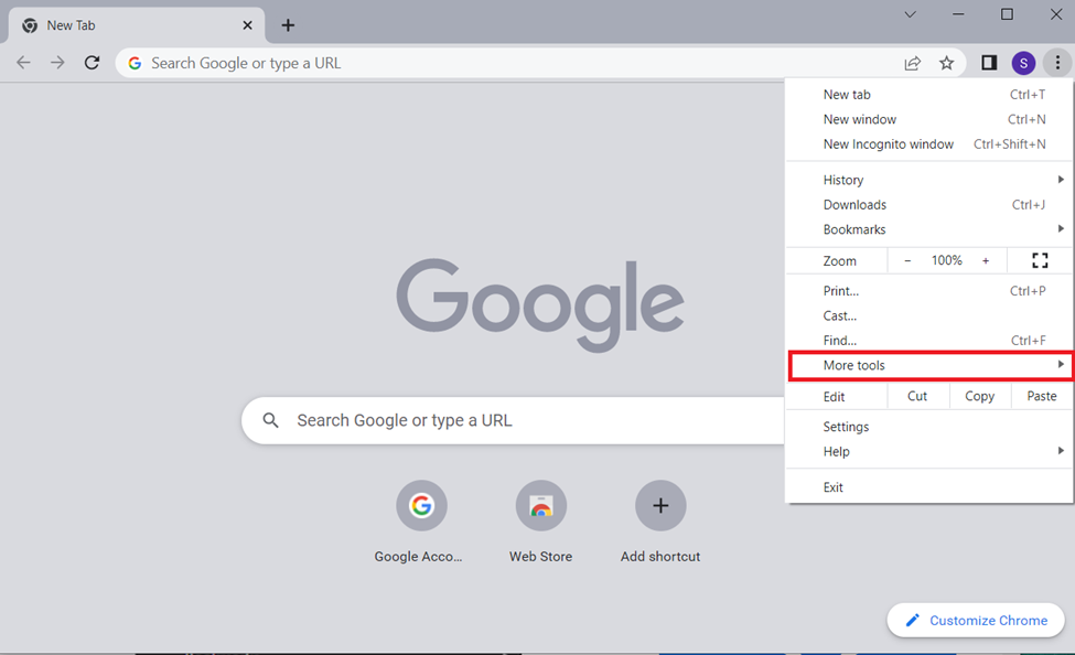 3.SelecteerMeer gereedschapin het vervolgkeuzemenu.