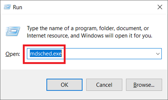 2. Typmdsched.exeop deDialoogvenster uitvoerenen raakBinnenkomenom de te lancerenWindows Geheugen Diagnostisch hulpprogramma.