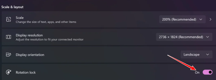3.In deSchaal en lay-outsectie, schakel de schakelaar naast de uitRotatievergrendelingom het uit te schakelen.