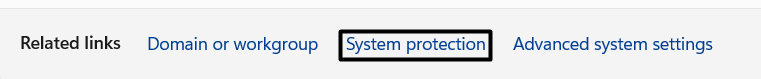 3.In deOversectie, ga naar deGerelateerde linkssectie en klik op deSysteembeschermingoptie.