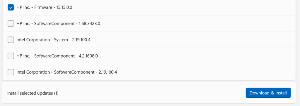 Stap 5:Klik op de knop Downloaden en installeren onder elke update om uw pc bij te werken.