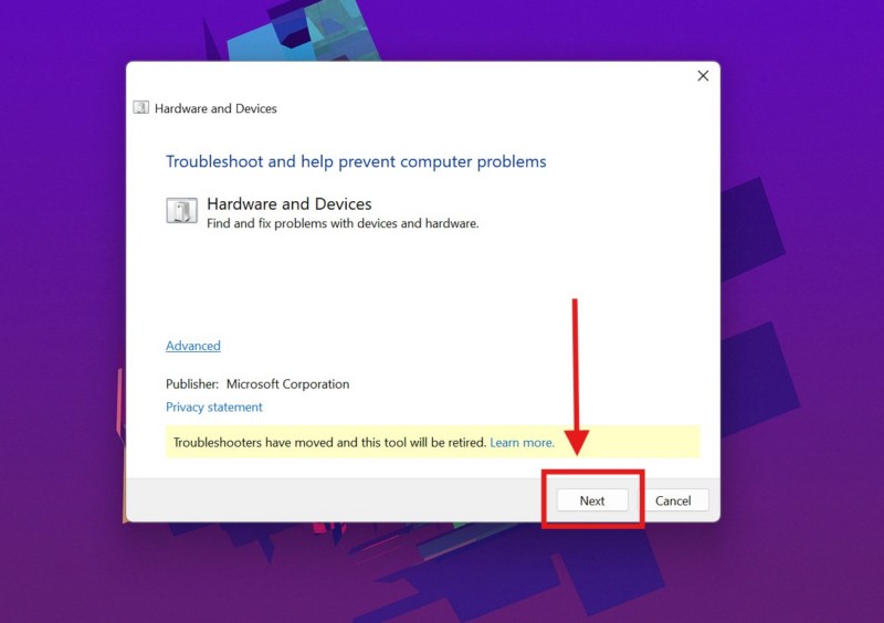 3. Voer de probleemoplosser voor hardware en apparaten uit op Windows 11