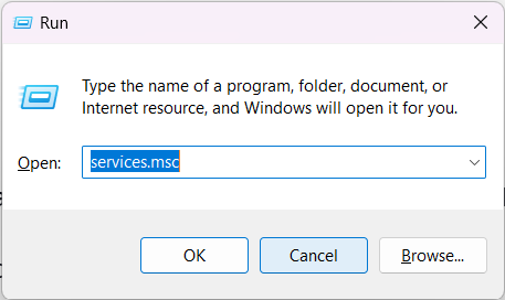 1.Druk op Windows + R om hetProgramma uitvoerenen typservices.mscin zijn zoekvak.