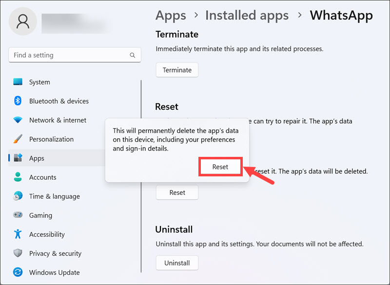 Als geen van de bovenstaande stappen uw probleem oplost, moet u mogelijk de WhatsApp Desktop-app opnieuw installeren op uw Windows 11-systeem.