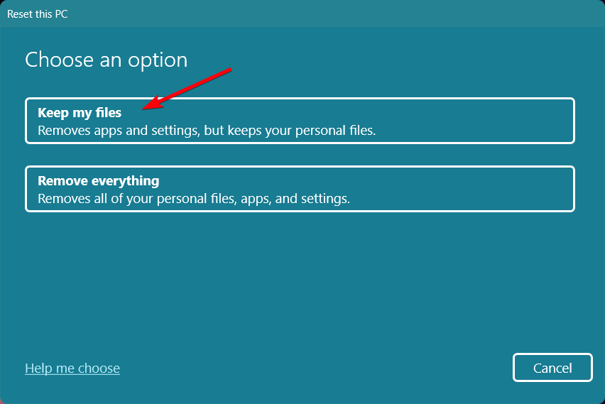 3.Klik opBewaar mijn bestandenEnreset de pc.