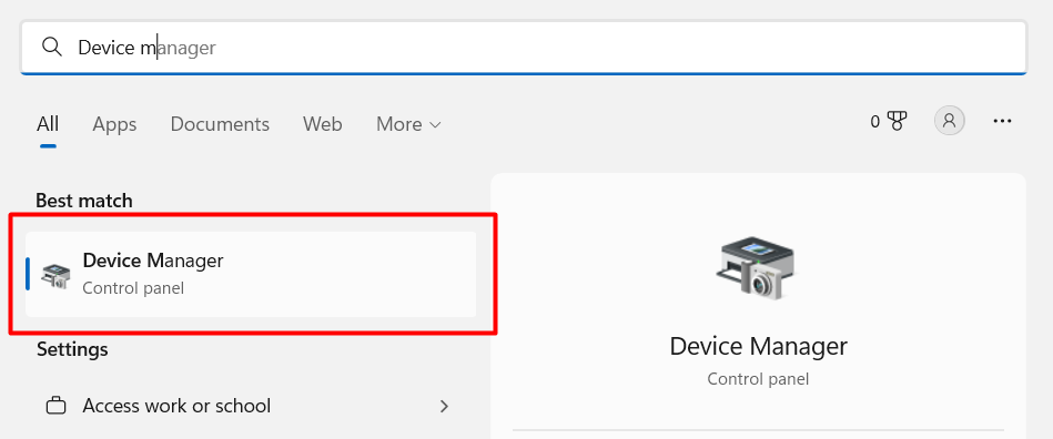 1.OpenWindows-zoekbalken typApparaatbeheer.
