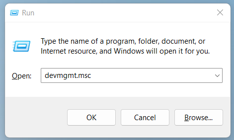- KlikkenWindows + R,En Voer de runbox in, voert inDevmgmt.MSC.