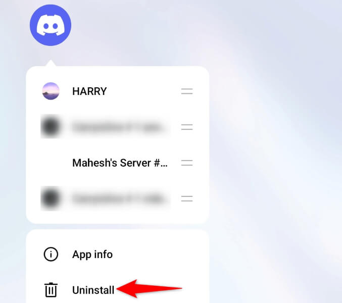 - Open de app-lade op uw telefoon, blijf uw app aanraken en selecteerVerwijderen.