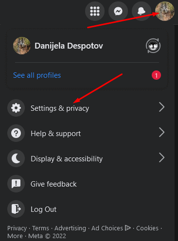 2. Selecteer uw profielafbeelding in de rechterbovenhoek en kiesInstellingen en privacyuit het vervolgkeuzemenu.