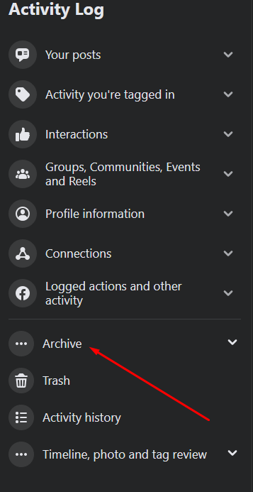 5. Er wordt een vervolgkeuzemenu geopend. SelecteerArchief van berichten.