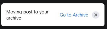 5. Je krijgt een pop-upbericht in de linkerbenedenhoek van je scherm: “Bericht naar je archief verplaatsen, ga naar archief.” Dit betekent dat je bericht van je tijdlijn is verplaatst en niet langer zichtbaar is op je pagina.