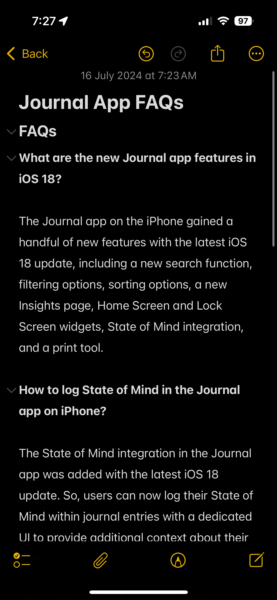 Daarmee is onze uitgebreide handleiding over het markeren van teksten en het gebruik van inklapbare koppen in de Notes-app op de iPhone in iOS 18 vrijwel afgerond. De mogelijkheid om teksten te markeren en inklapbare koppen of subkoppen toe te voegen in de Notes-app helpt gebruikers, vooral degenen die afhankelijk zijn van de genoemde app voor hun dagelijkse notities en schrijfactiviteiten, hun notities te ordenen en ze gemakkelijk leesbaar te maken.