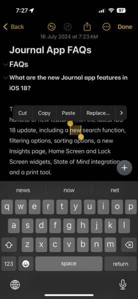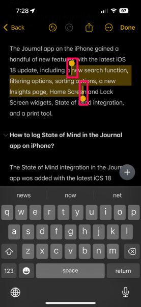 Op deze manier kunt u tekstinhoud in notities in de Notes-app markeren, zodat deze zichtbaar is op uw iPhone in iOS 18.