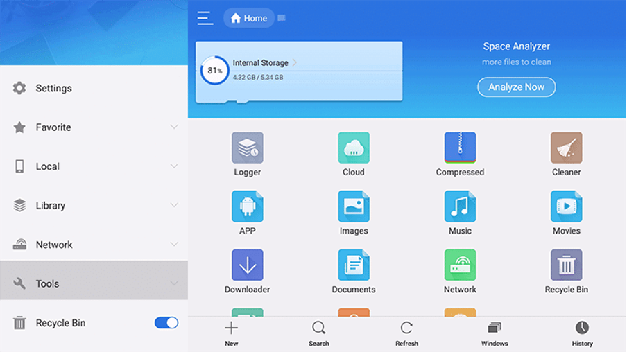1.Open op de Firestick hetES File Explorer-applicatie.