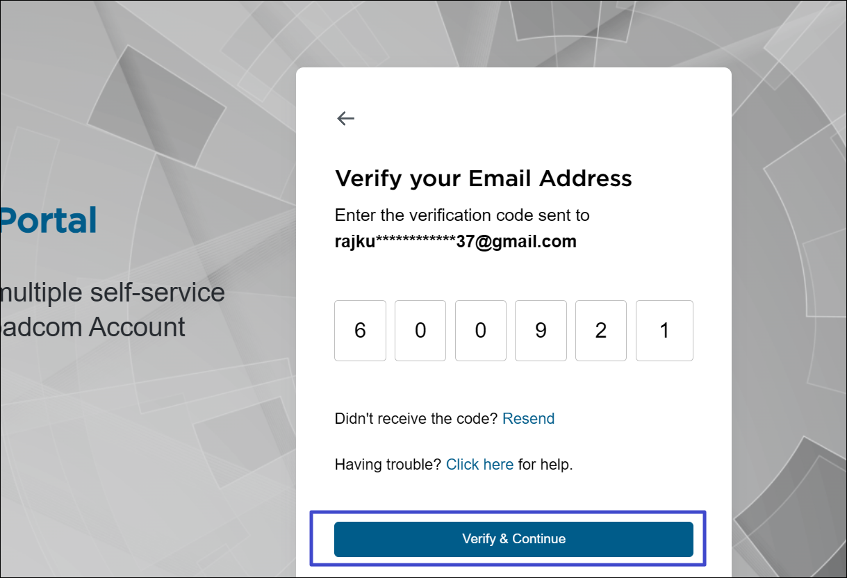 3. Voer de verificatiecode uit de e-mail in en klik op “Verifiëren en doorgaan“.