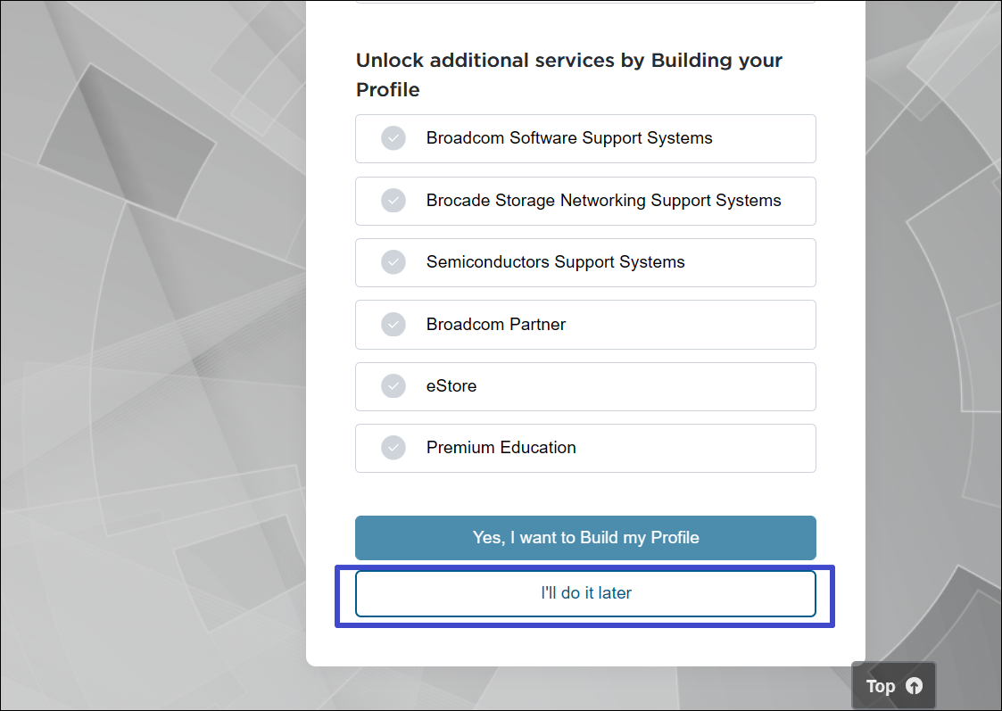 1. Open de officiële Broadcom Register-website (https://profile.broadcom.com/web/registration).