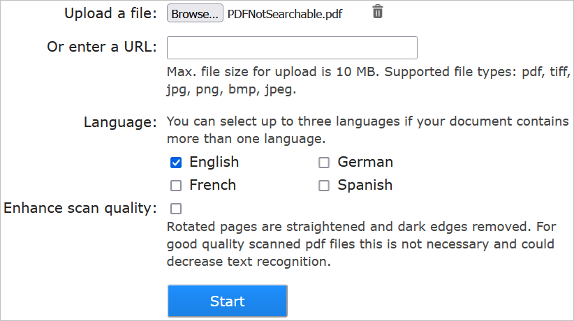 Zodra u heeft bevestigd dat u het document niet kunt doorzoeken, kunt u een van deze online bestandsconverters gebruiken. Met OCR-technologie kunt u snel en eenvoudig doorzoekbare PDF-bestanden maken.